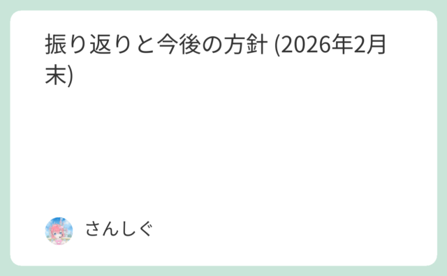 マイクロ法人 振り返りと今後の方針 (2026年2月末) 2026年2月の振り返りです。先月の振り返りは↓です。資産推移状況先月末からの比較です。(過去の集計分も残しています)年月日資産(円建)資産(ドル建換算)為替レート2026/2/281億4504万円$929,023156.12円/$↑ (+... 2026.03.02 マイクロ法人